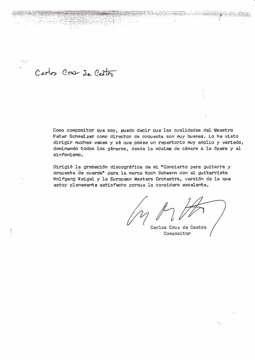 Empfehlungsschreiben Komponist Carlos Cruz de Castro (spanisches Original)