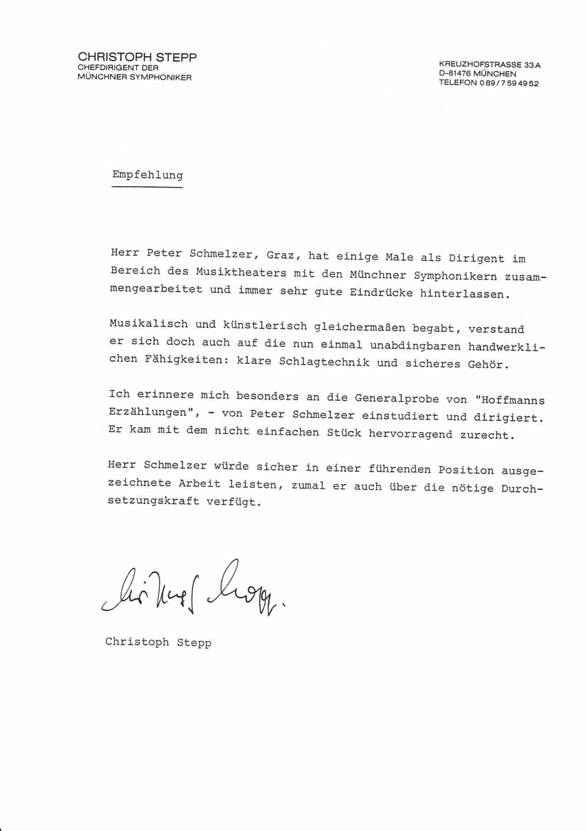 Empfehlungsschreiben Chefdirigent Christoph Stepp